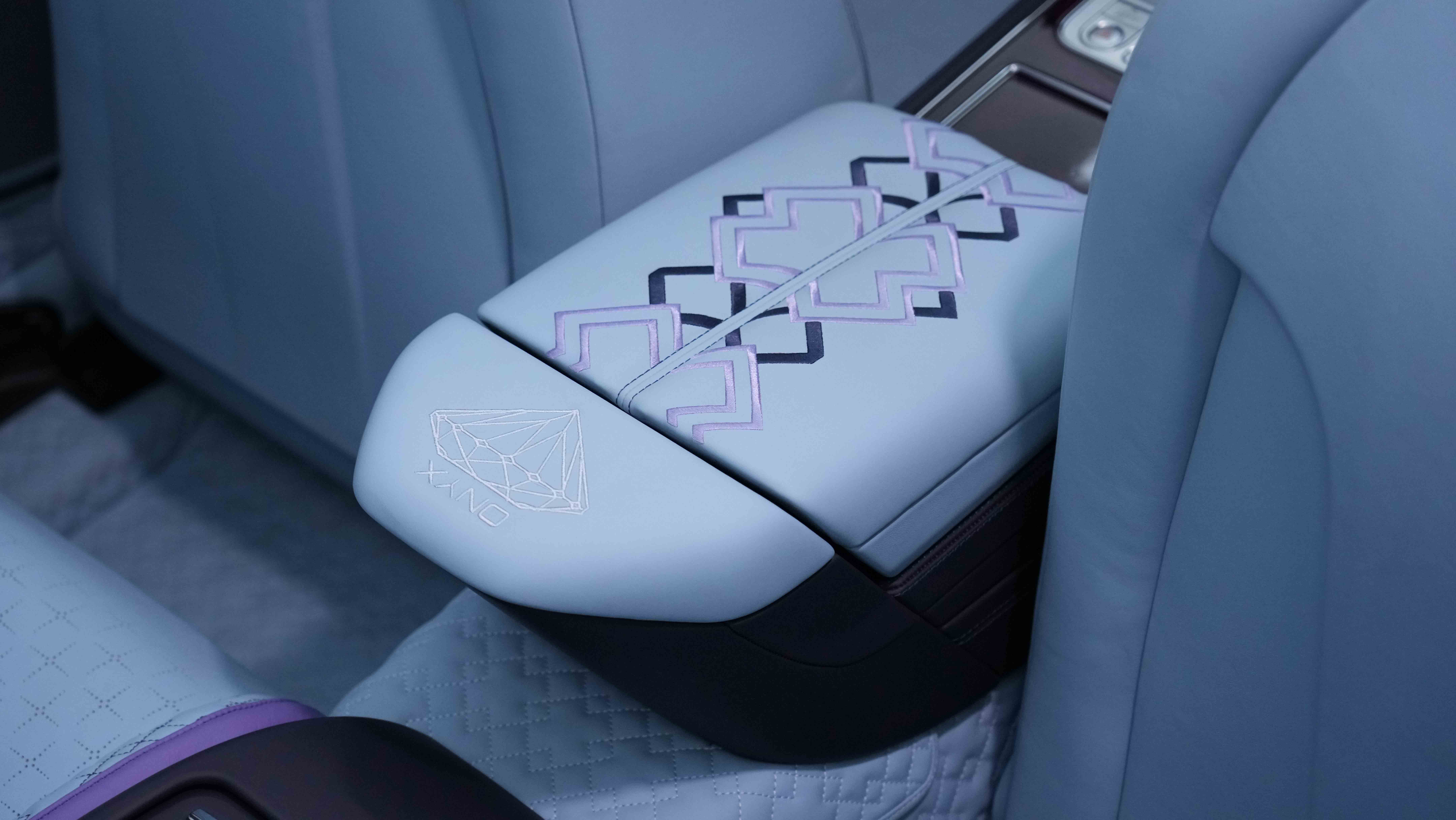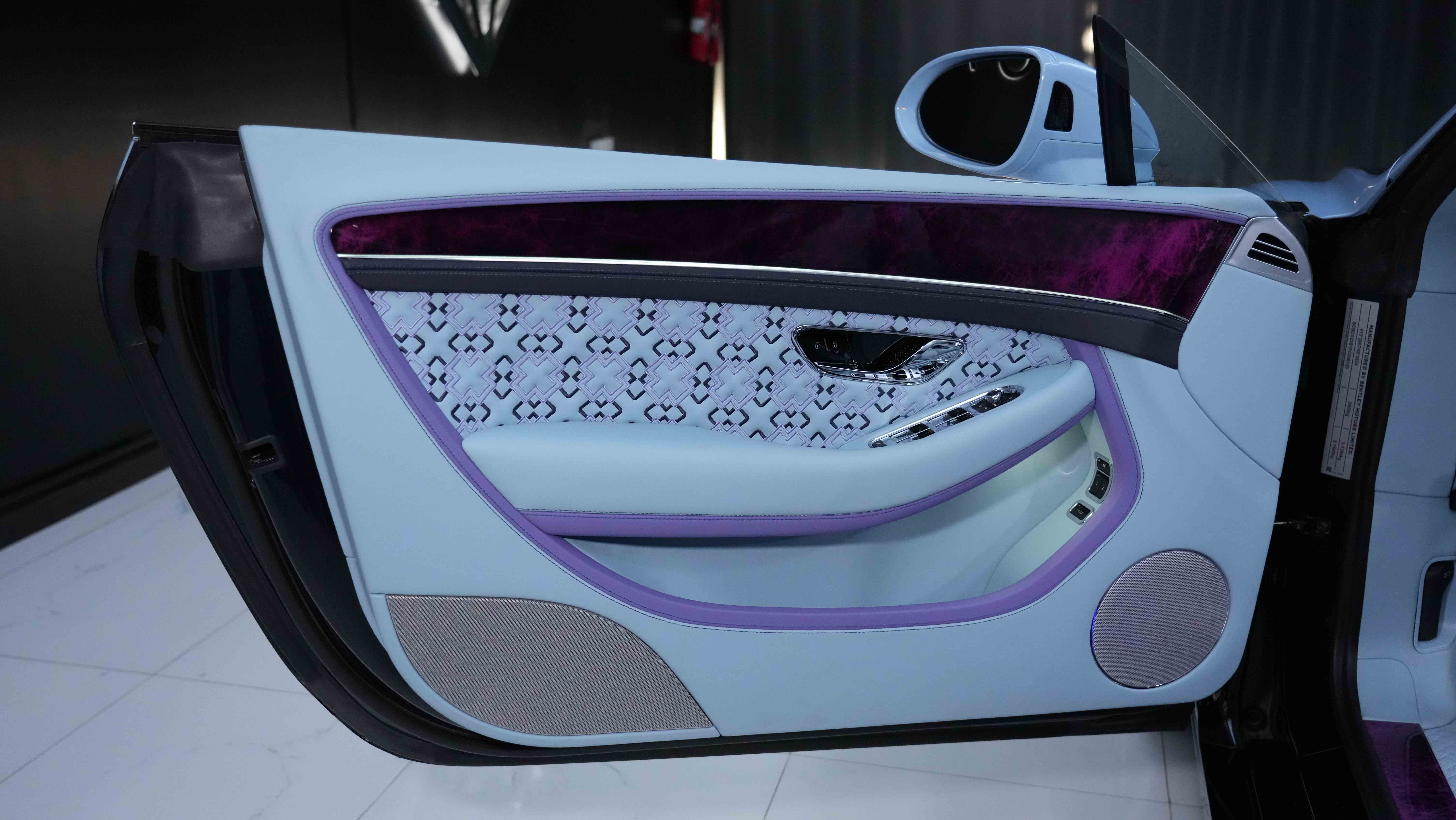 - Main Hide Baby Blue / Secondary Hide Iris Purple / Carpets Baby Blue / Emblem Stitching Beluga / LED Welcome Lamps