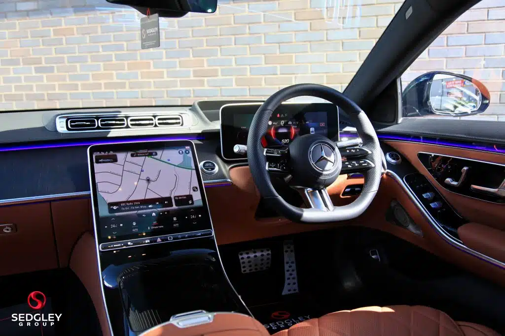 PRESENTING THIS SHOW STOPPING VAT QUALIFYING MERCEDES S500LH MHEV (EXECUTIVE, PREMIUM PLUS) 4MATIC BRABUS B50 FINISHED IN NAUTICAL BLUE. THIS EXQUISITE VEHICLE IS AN IMMACULATE EXAMPLE AND IT BENEFITS FROM THE BESPOKE BRABUS B50 FACTORY CONVERSION THAT INCLUDES; THE FRONT SPLITTER AND FRONT AIR INTAKE WITH INTEGRATED DRLs, REAR DIFFUSER AND BRABUS EXHAUST TIPS, CARBON BOOT SPOILER, POWERXTRA 500BHP POWER UPGRADE, 21 INCH PLATINUM EDITION MONOBLOCK FORGED ALLOYS & BRABUS INTERIOR UPGRADES, EVERYTHING IS VERY TASTEFULLY DONE. COMPLEMENTING THE BRABUS TREATMENT, THE OTHER OPTIONS INCLUDE; ELECTRIC PANORAMIC SLIDING GLASS SUNROOF, ENHANCED HEAD UP DISPLAY, BURMESTER 3D SURROUND SOUND SYSTEM, CHAUFFEUR PACKAGE WITH RECLINING REAR SEAT & DEPLOYING FOOT REST, DRIVING ASSISTANCE PACKAGE PLUS, DISTRONIC PLUS WITH ADAPTIVE CRUISE CONTROL PLUS, STEER ASSIST (SELF DRIVE CAPABILITY) AND MORE, INTELLIGENT PARKING PILOT WITH 360 CAMERAS & REMOTE CONTROLLED PARKING, SOFT CLOSE DOORS AND TAILGATE, SIENNA BROWN NAPPA LEATHER INTERIOR WITH CONTRAST STITCHING COMPLEMENTED BY FINELINE OPEN GRAINED WOOD TRIM, ELECTRIC ADAPTIVE CLIMATISED FRONT AND REAR SEATS, MASSAGE SEATS WITH ACTIVE CONTOUR FUNCTION, WARMTH COMFORT PACKAGE INCLUDING HEATED FRONT AND REAR SEATS, HEATED ARMREST AREAS & HEATED AMG SUPERSPORT LEATHER DEEP EMBOSSED STEERING WHEEL, MBUX VEHICLE OPERATION REAR TABLET, REAR ELECTRIC SUNBLINDS, MEMORY PACKAGE FOR SEATS, MIRRORS AND STEERING COLUMN, MBUX DRIVING AUGMENTED REALITY, CRISP OLED DISPLAYS WITH 3D VIEW, FINGERPRINT MBUX ACCESS SCANNER, MBUX INTERIOR ASSIST FRONT AND REAR, SMARTPHONE INTERFACE, EXTENDED MBUX FUNCTIONS, GESTURE CONTROL, FRONT AND REAR WIRELESS PHONE CHARGING, ADAPTIVE ULTRA DIGITAL LIGHT HEADLIGHTS WITH IMAGE PROJECTION FUNCTIONS AND HIGH BEAMS ASSIST PLUS, AIRMATIC CARPET RIDE AIR SUSPENSION, PREMIUM AMBIANCE & ADAPTIVE INTERIOR LIGHTING, COMFORT ACCESS & KEYLESS GO WITH SEAMLESS DOOR HANDLES, ENERGIZING COMFORT PACK WITH AIR CONTROL & PURIFYING PACKAGE, DASH CAM, VEHICLE TRACKER & PARKED VEHICLE LOCATOR AND THE LIST IS ENDLESS…