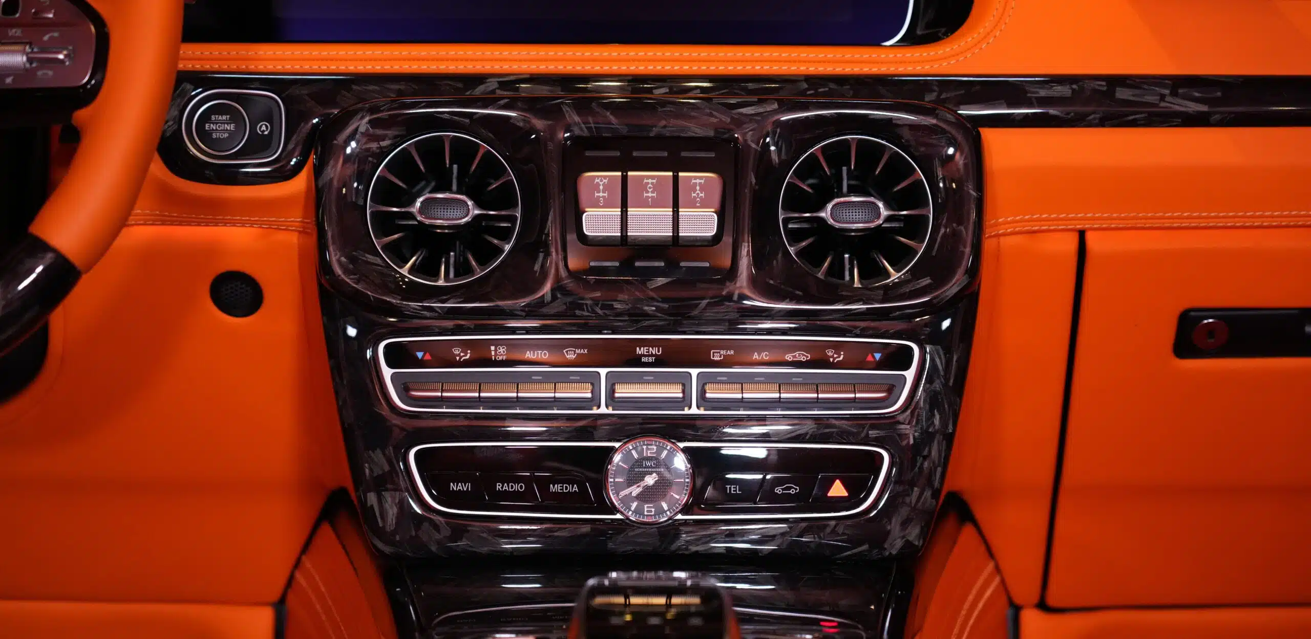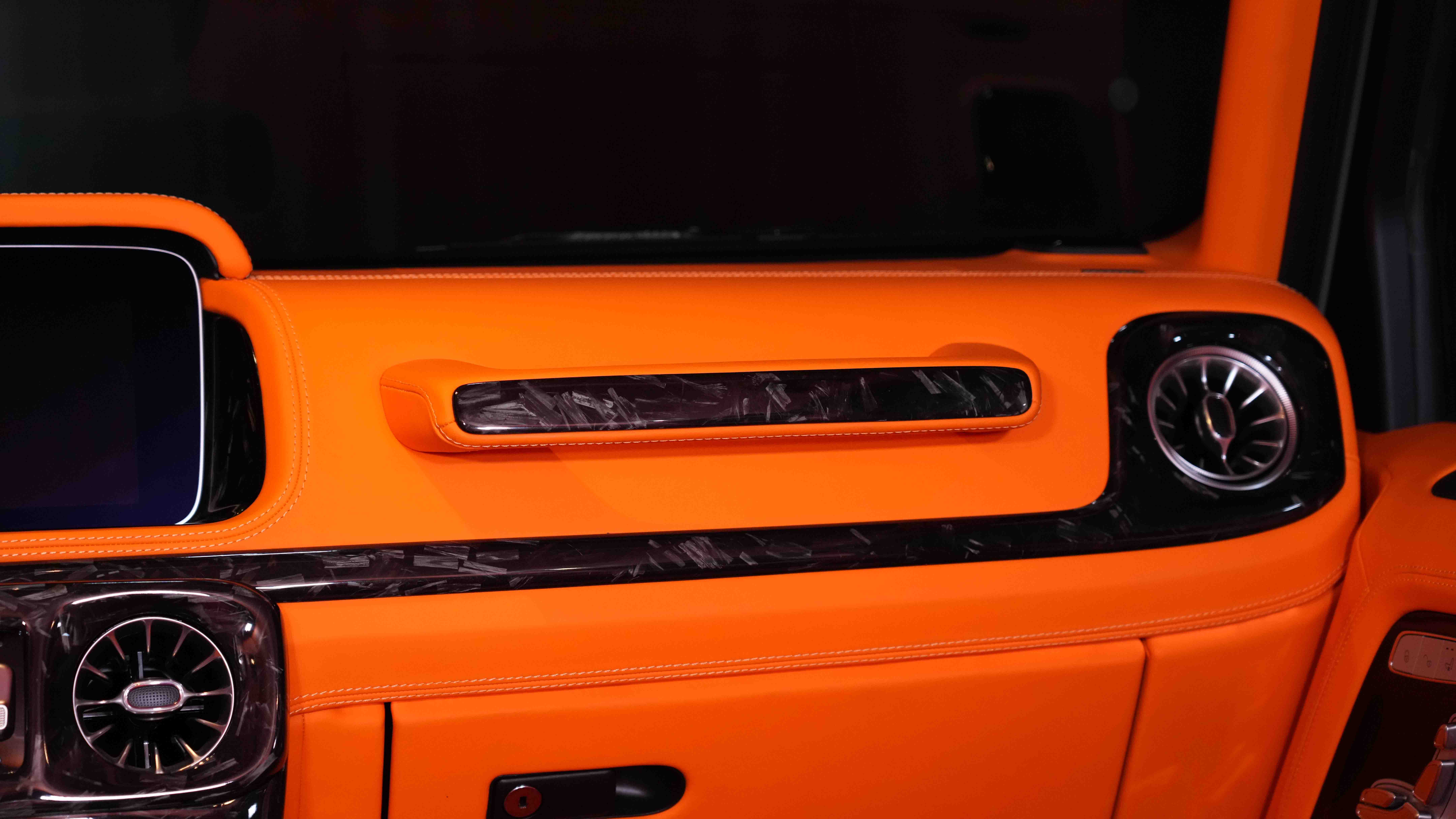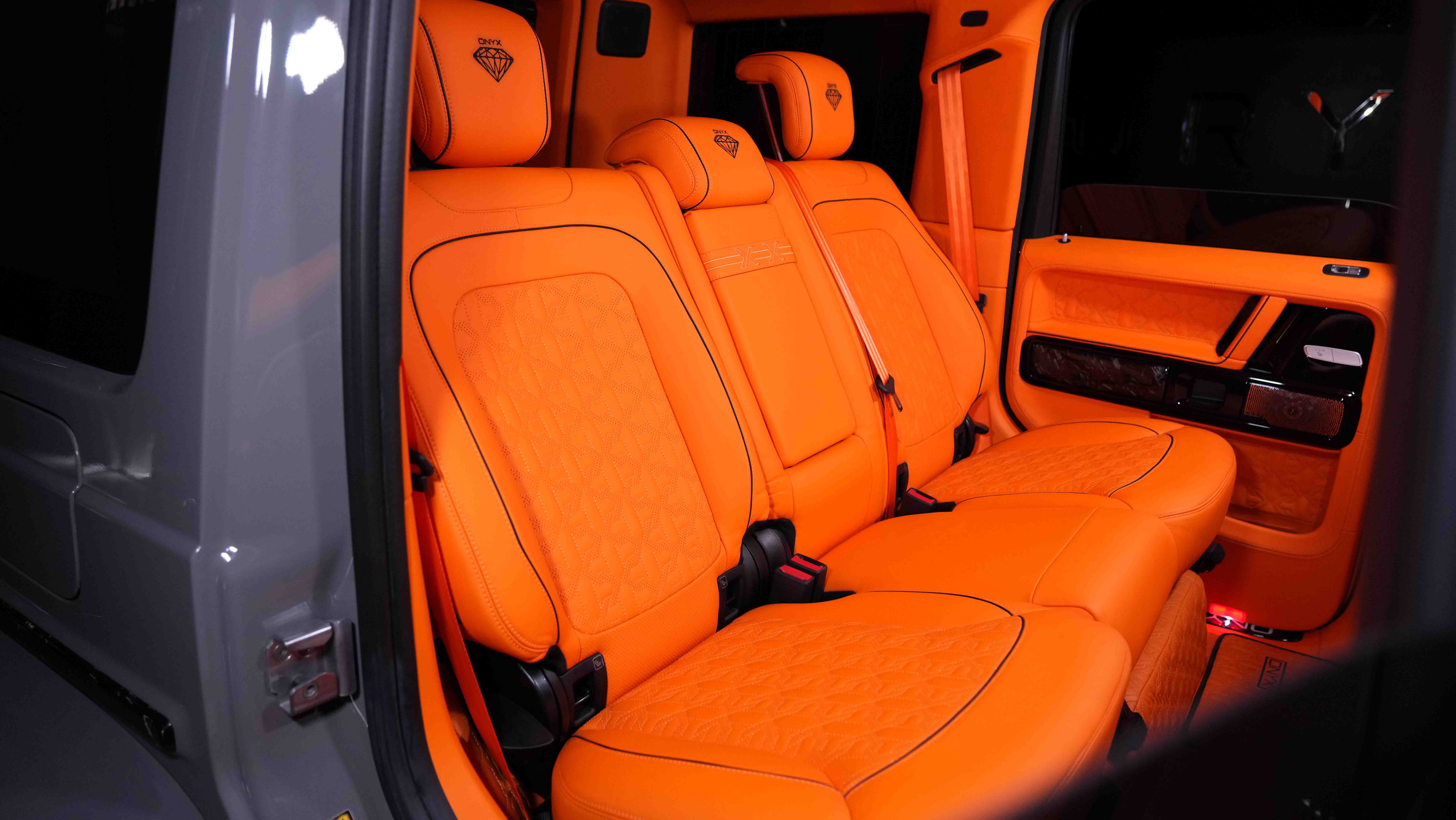 - Complete refined interior by exclusive leather sorts seats made in mandarine orange with orange and black stitching