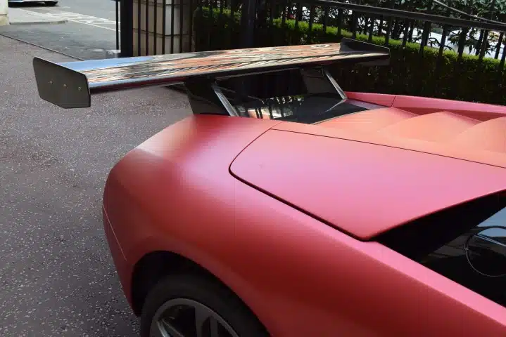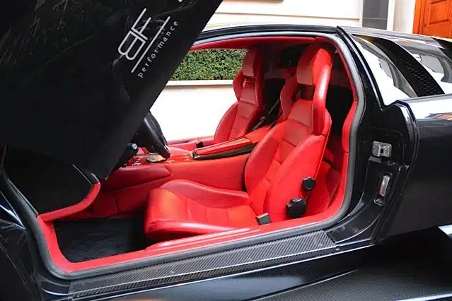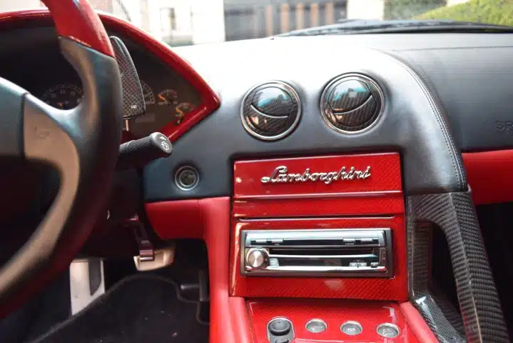 This spectacular and prize winning show car features numerous BF Performance modifications to make it unique and quite striking. The car has been upgraded with a remotely switchable sports exhaust which improves on what was already one of the best exhaust notes on any car produced in recent years and adds around 40 horsepower. The carbon fibre front splitter, side skirts, rear diffuser, engine cover and rear wing were produced by BF Performance to meet the demand for a roadgoing version of the track-only Murcielago R-GT and add visual presence. A narrower rear wing is also available for road use. The brakes have been uprated to LP640 first series specification as have the wheels and rear lights. All upgrades can be easily removed returning the car to factory specification. The interior is accessed through remote opening driver and passenger doors and is finished in red leather with custom red carbon fibre to the centre console and dash surround. The facility has been provided to fit racing belts should the owner so desire. Entertainment is provided by a top of the line touch screen head unit featuring GPS navigation and reversing camera with a separate amplifier, uprated speakers and subwoofer – if the exhilarating exhaust soundtrack is not enough by itself. The cost of the improvements to this car add up to in excess of £60,000 so this car represents something of a bargain.
