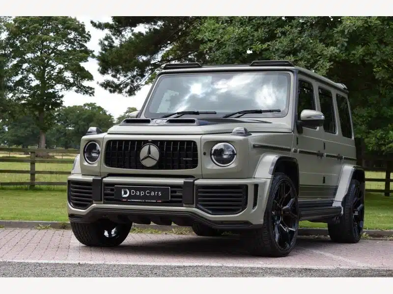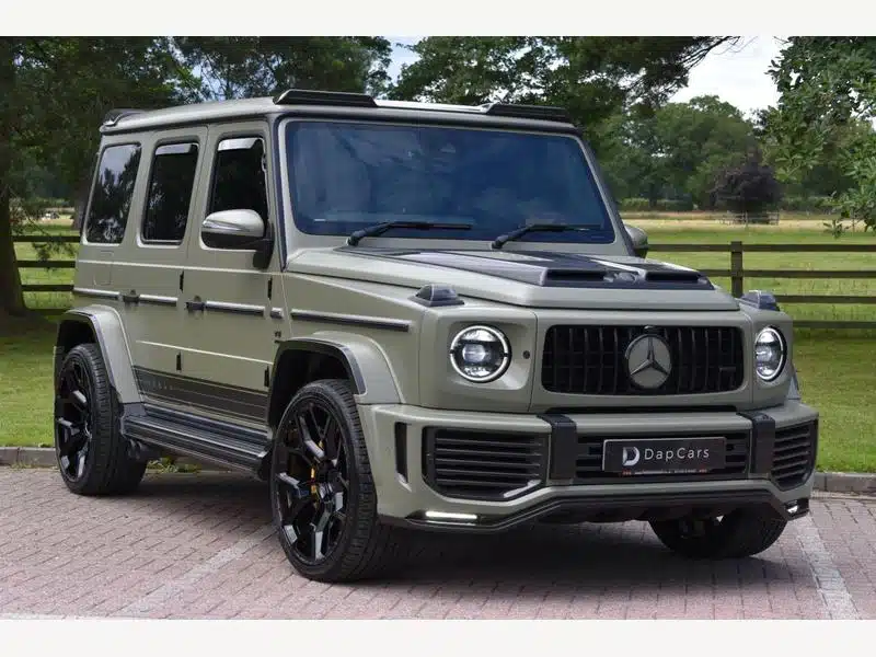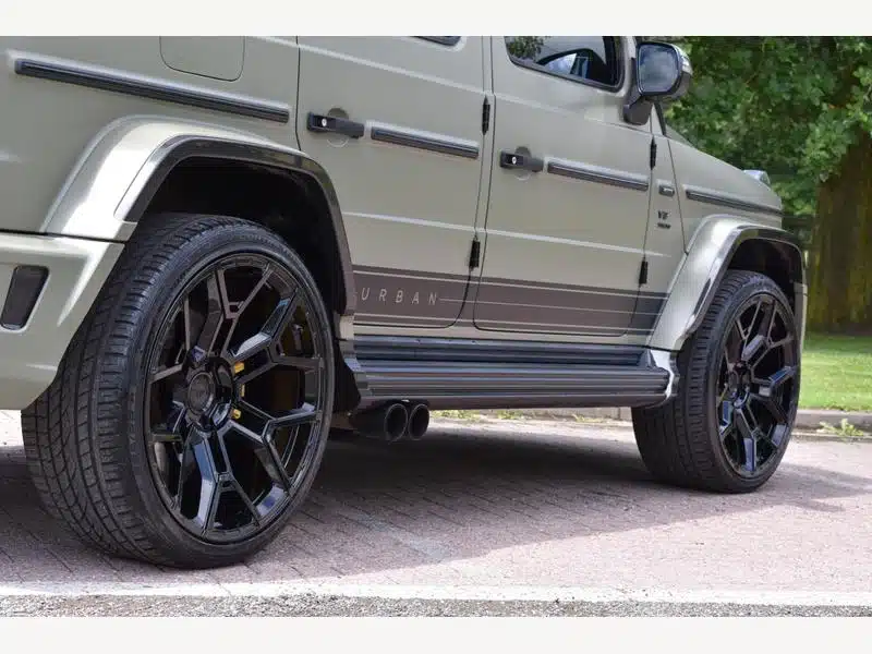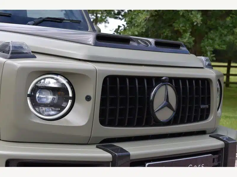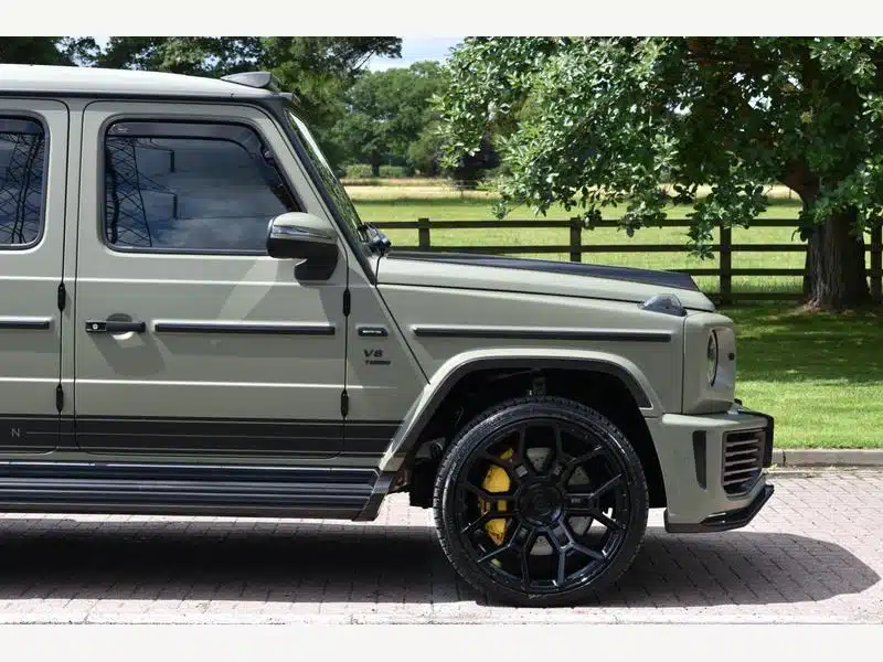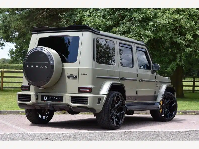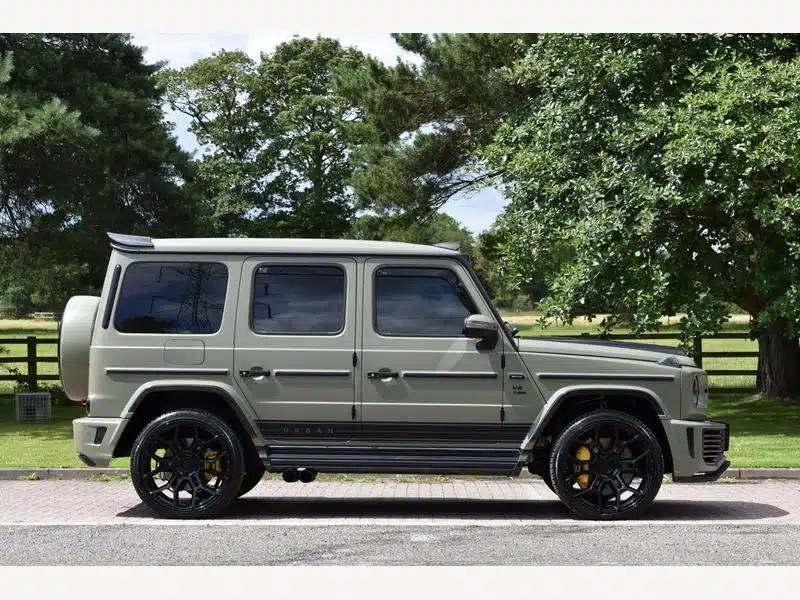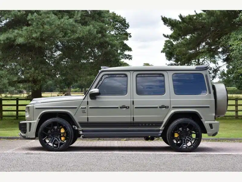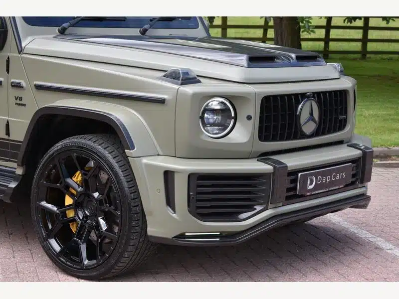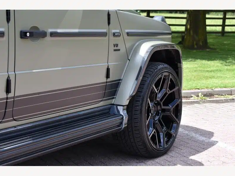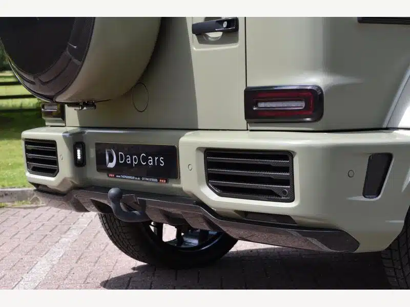 We are pleased to be able to offer for sale this truly stunning G63 AMG that benefits from not only the carbon fibre Urban Automotive Widetrack exterior enhancement but also a Khaki Green exterior wrap. The vehicle is presented with full Mercedes-Benz service history. Full details of the Urban Automotive conversion are as follows: Complete Carbon Fibre Front Bumper With Exposed Intakes And Front Splitter, Black Styling Pack Panamericana Grille And Badge, Bullnose Carbon Fibre Bonnet, Carbon Fibre Roof DRL Pod, Widetrack Carbon Fibre Arches With Exposed Edges, Carbon Exhaust Tips, 23" Forged UV-4 Wheels Finished In Gloss Black, Exposed Carbon Fibre Rear Roof Spoiler, Urban Embossed Carbon Fibre Rear Wheel Cover, Complete Carbon Fibre Rear Bumper With Exposed Intakes, Sport Exhaust And Khaki Green Wrap With Satin Black Branding Band. Four wheel-drive, Matt Sati Khaki Wrap, £164,950